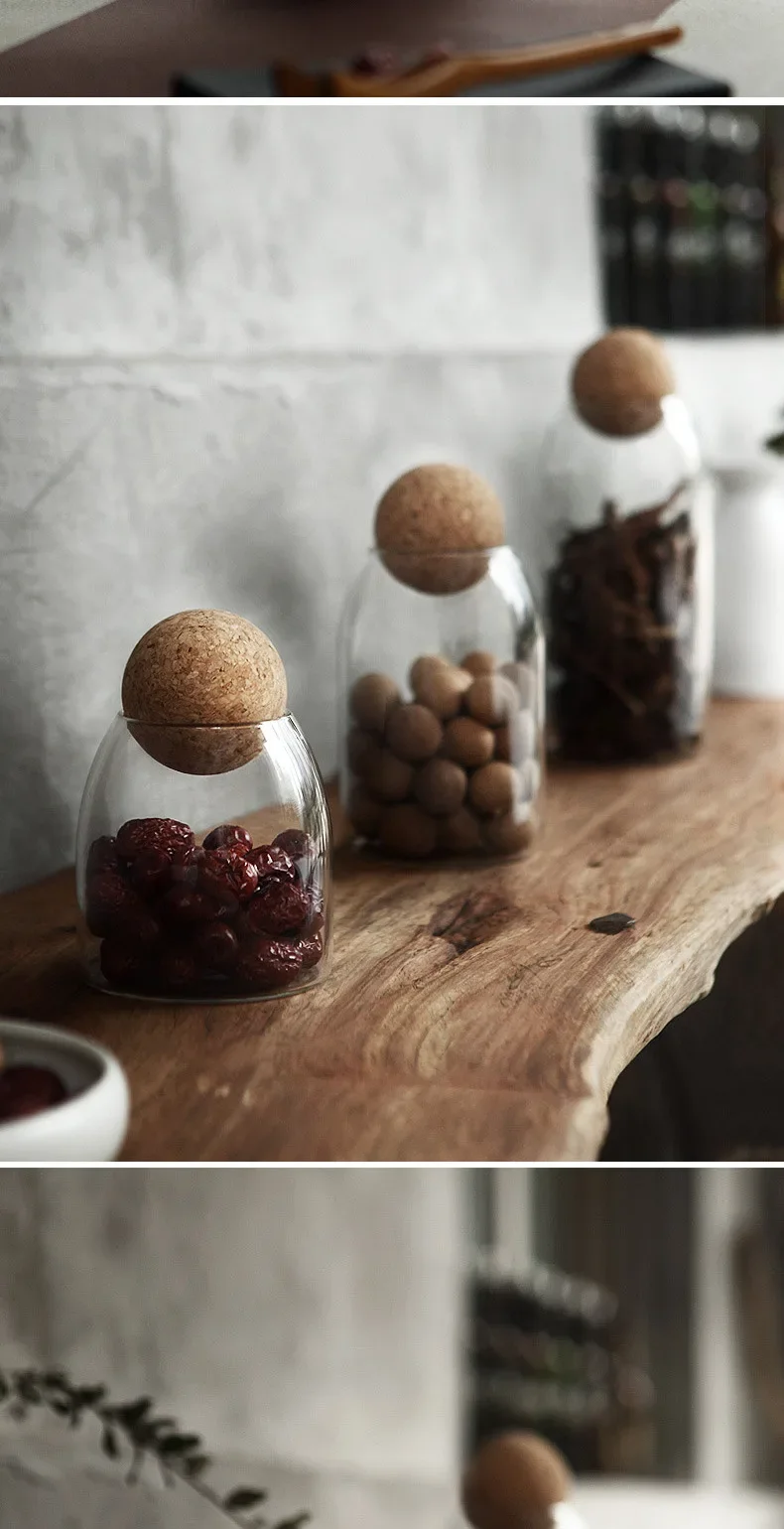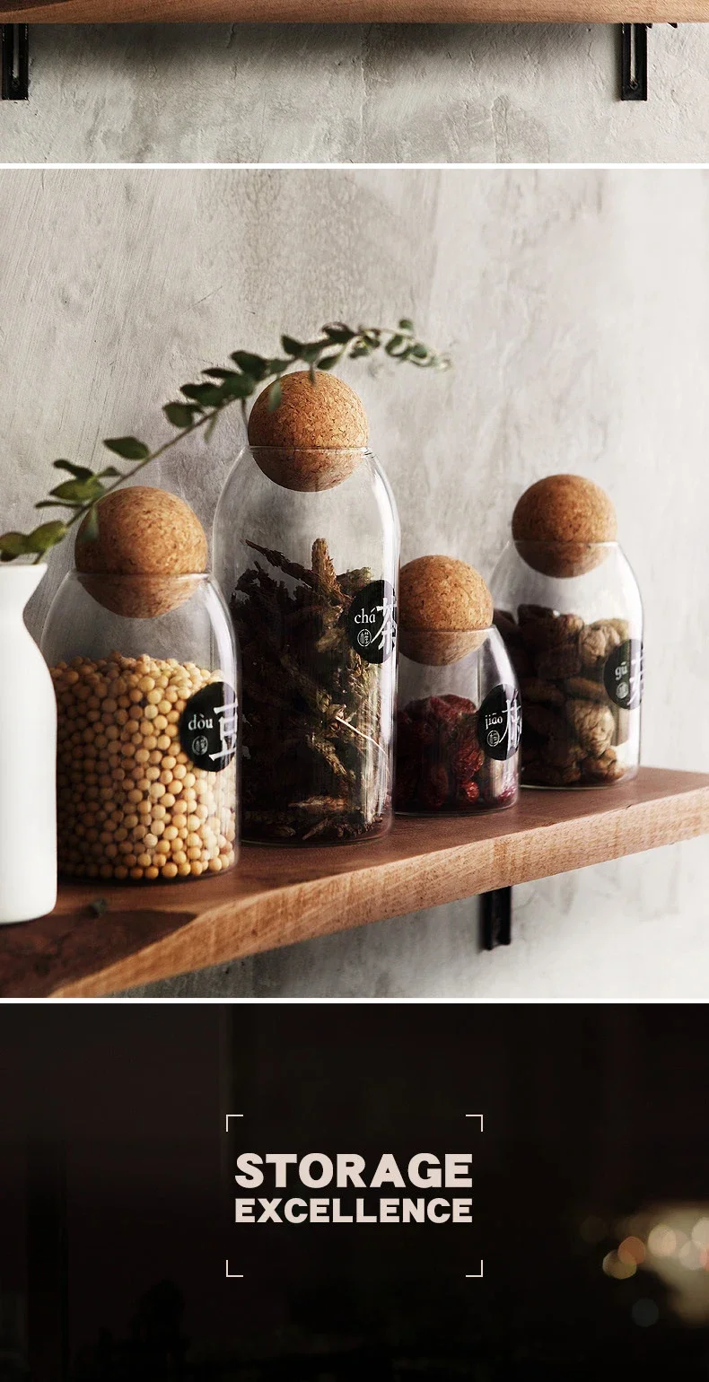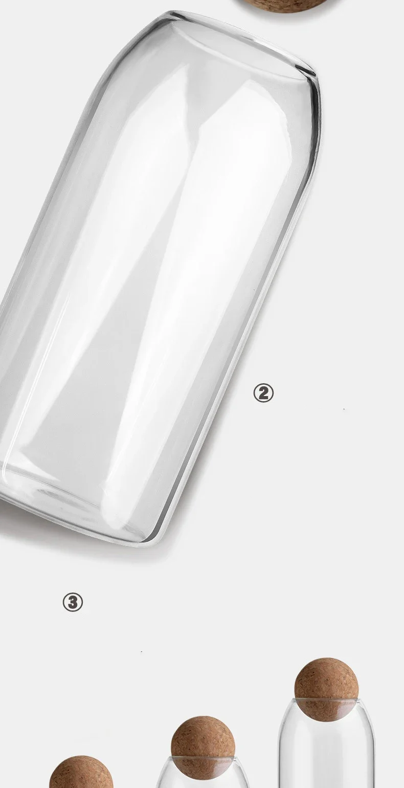 Clear Glass Storage Jar with Cork Lid Atorage Bottle Sealed Tank Tea Can Cereal Coffee Creative Decoration Airtight Canister Set