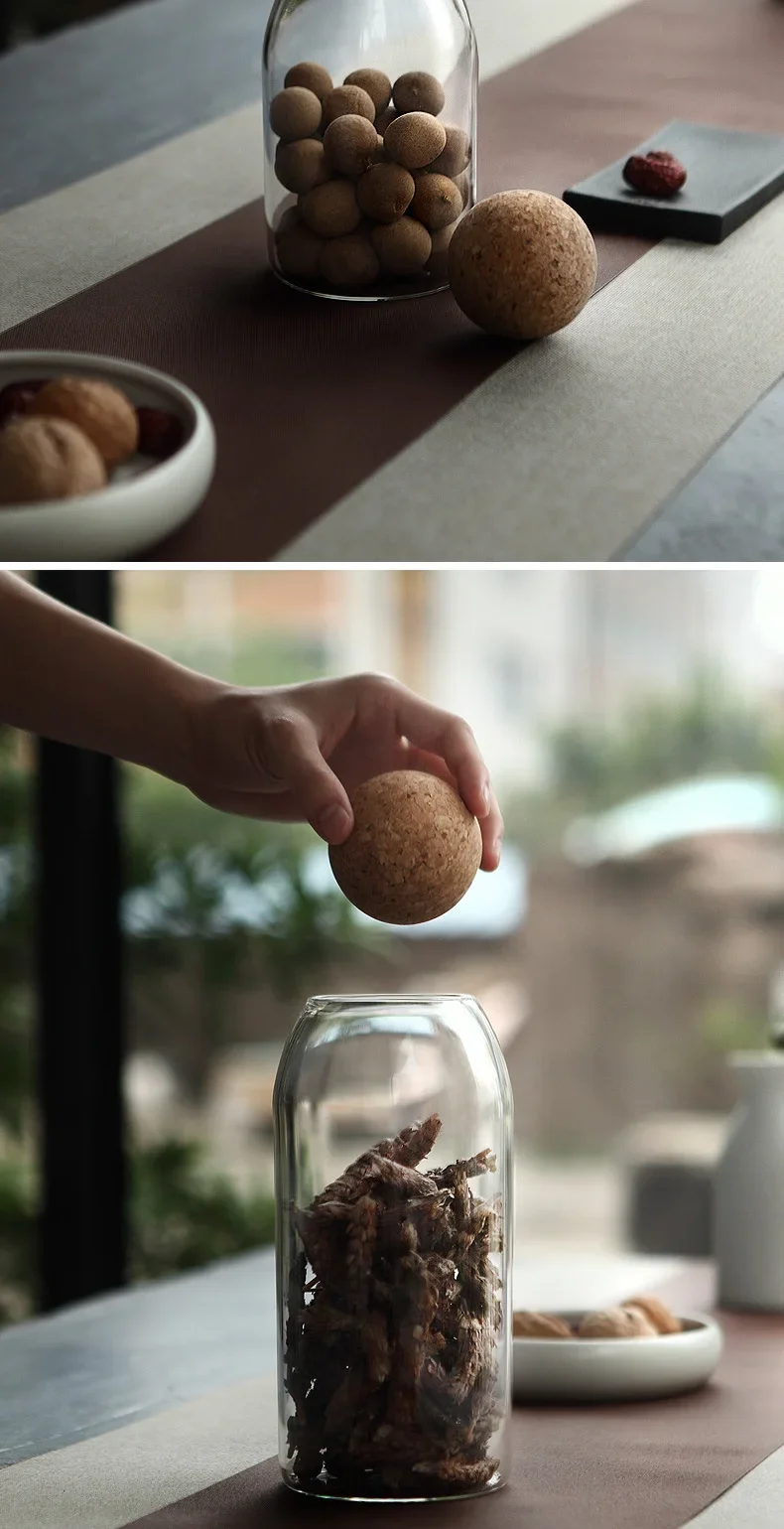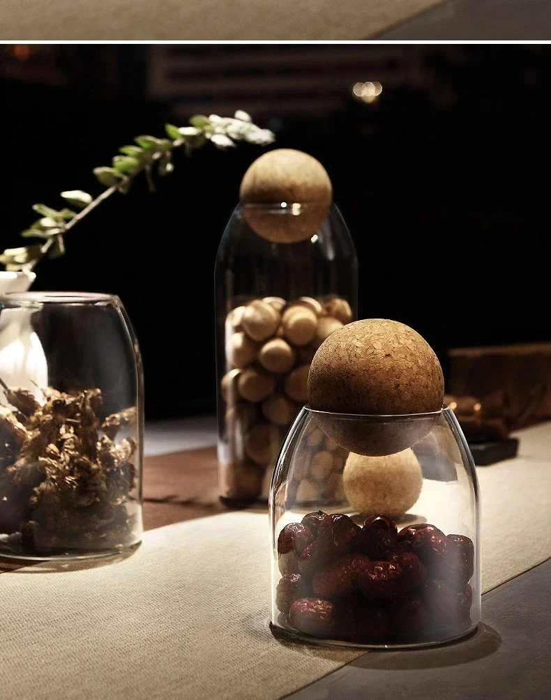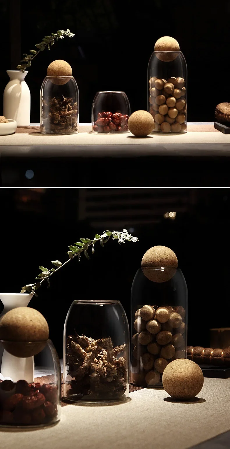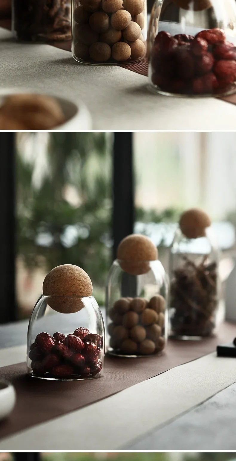 Clear Glass Storage Jar with Cork Lid Atorage Bottle Sealed Tank Tea Can Cereal Coffee Creative Decoration Airtight Canister Set