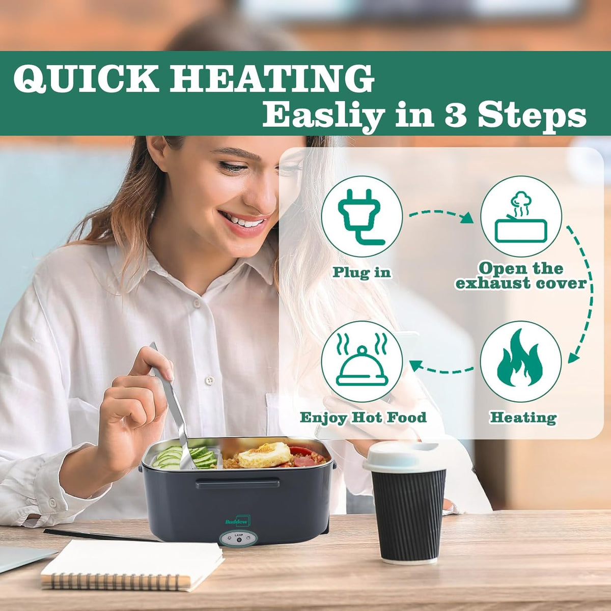 Say goodbye to cold meals and expensive takeout with the DUPASU Electric Lunch Box, your perfect companion for enjoying hot, delicious, home-cooked meals anywhere. This powerful 100W portable food warmer combines cutting-edge heating technology with practical design to ensure you never compromise on meal quality again.